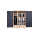 Perfect organisation: the interior compartments are designed to hold glasses, shakers, bar accessories and more, ensuring order and practicality. A bottom drawer offers extra space for filters, measuring cups and utensils.