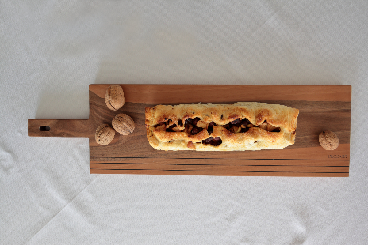 Des accessoires comme la planche à découper en noyer massif, conçue pour un usage pratique au quotidien, allient esthétique et fonctionnalité. Son veinage unique et la robustesse du bois la rendent parfaite pour servir des plats chauds avec élégance.