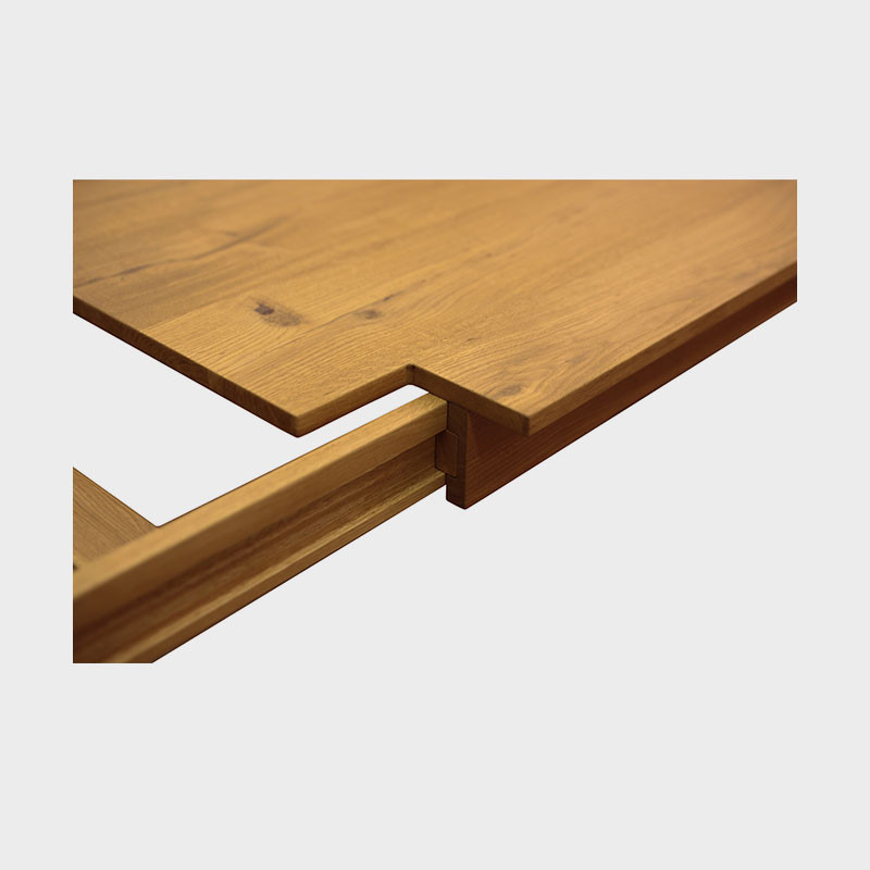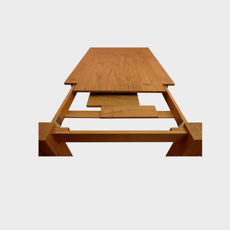 Dublino è un tavolo in cui dettaglio formale e funzionalità si fondono perfettamente. Il top è sagomato in corrispondenza degli angoli per alloggiare le gambe, che si allungano assieme alla struttura del tavolo. E’ realizzato in rovere massello finito al naturale; le allunghe sono inserite nell’alloggiamento nascosto sotto al top. Su richiesta disponibile anche nella versione fissa.